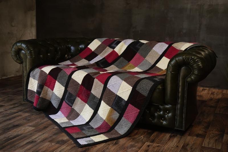 Плед выполнен в технике печворк. Преобладающие оттенки синей гаммы. Подходит на подарок как мужчине так и женщине. В составе пряжа разной фактуры. Что позволяет пледу хорошо держать форму квадратов. Размер 190см х 140см Изделие постирано в машинке на режиме Синтетика 30 градусов отжим 800 Сохнет быстро. Дополнительные характеристики: Цвет : Белый Цвет : Желтый Цвет : Красный Цвет : Серый Цвет : Черный Материал : Акрил Материал : Полушерсть Материал : Шерсть Тип: Полуторные