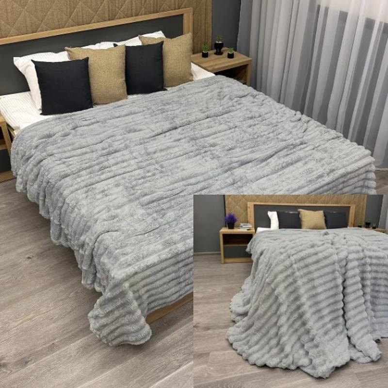 Плед-покрывало на диван, кровать в полоску (220х220см) шарпей. цвет серый