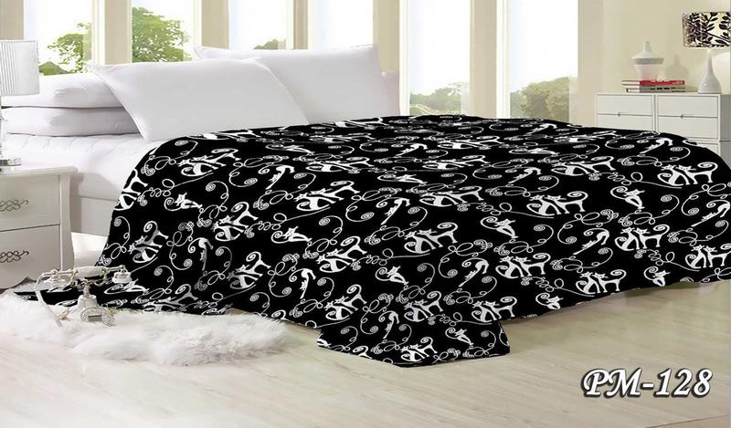 Плед из флиса черный с котами двуспальный 200х220 см евро