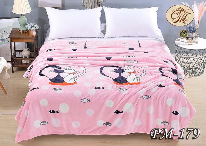 Плед-покрывало из флиса розовый пара котов двуспальный 200х220 см евро