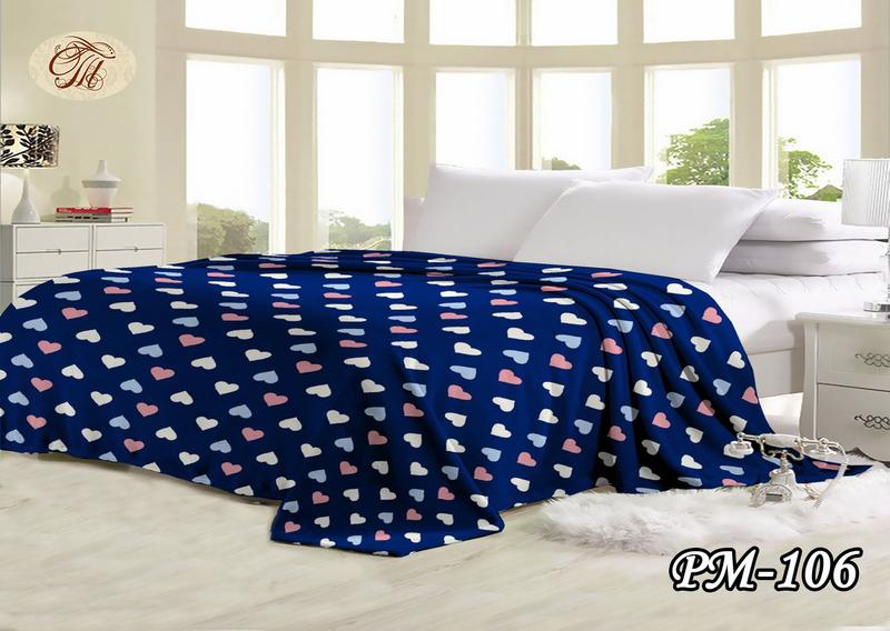 Плед из флиса сердечки на синем (160х210)
