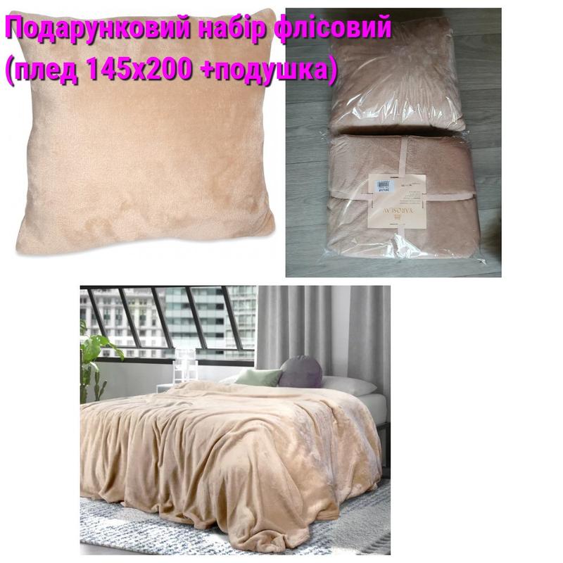 Подарочный набор плед флисовый и подушка , флисовое покрывло от производителя ярослав укра...