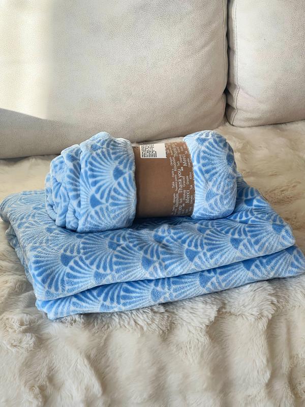 Затишний та м'який блакитний плед із візерунком у вигляді морських ракушок. Матеріал: мʼякий поліестер Розмір: 150х110 см - для додаткового тепла - приємний до тіла - як покривало , як ковдрочка