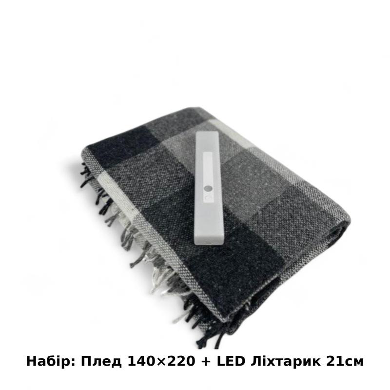 Набор плед шерстяной п8 бел-дым-св.антр 140×200 см + фонарь-лампа led 21см с датчиком движ...