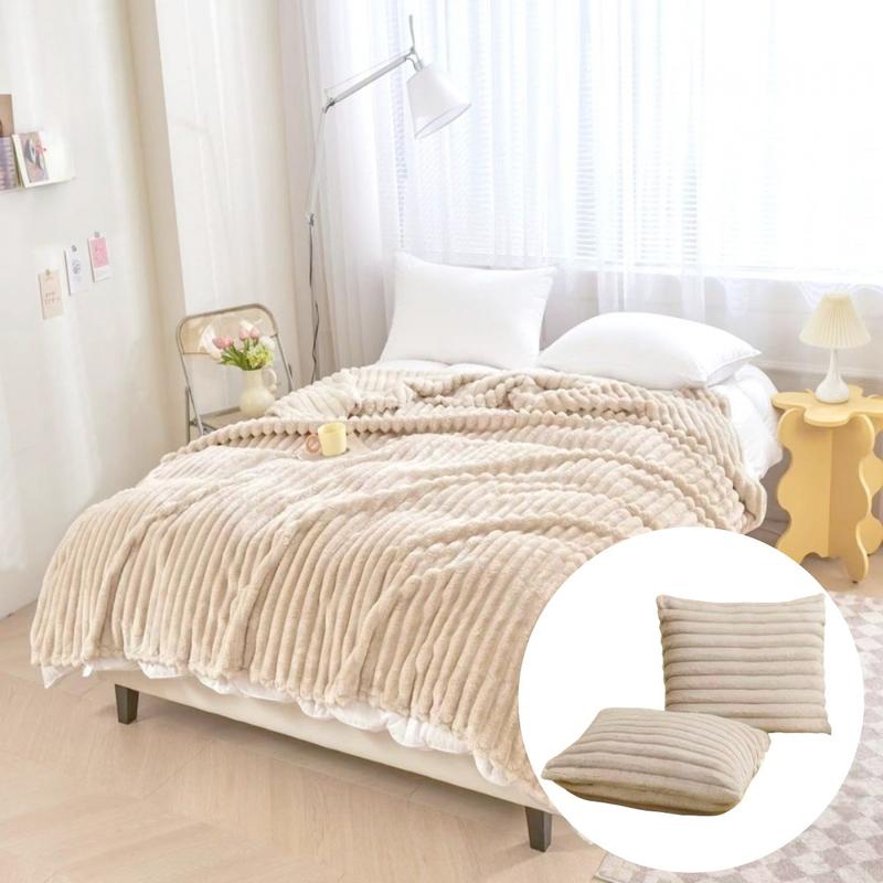 Набір плед двоспальний з двома подушками koloco "королівський шарпей" (40856) бежевий