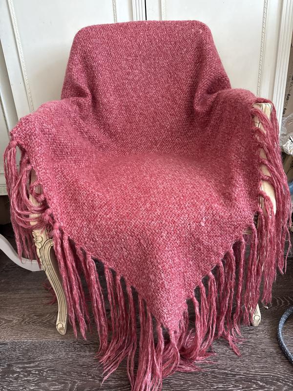 Легкий і водночас дуже теплий плед . Колір рожево-кораловий меланж. Розмір без китиць:114х108см. Китиці-32 см. Можно використовувати як шаль.
