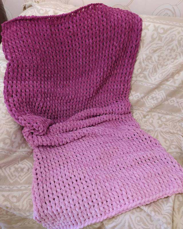Милый пледик ручной работы. Размер 155см*74см. Цвет омбре - плавный переход от фиолетового к нежно розовому. Гипоалергенный, подойдёт как для взрослых, так и для деток: создаст уют дома, согреет в прохладную погоду на прогулке, можно использовать в коляску, в кроватку, так же отличный подарок родным. За счёт неплотной вязки, с дырочками, дышащий, не парит, но очень тёплый. 600грн. Возможен повтор любого цвета и размера, возможны другие узоры. Цена зависит от ваших пожеланий.