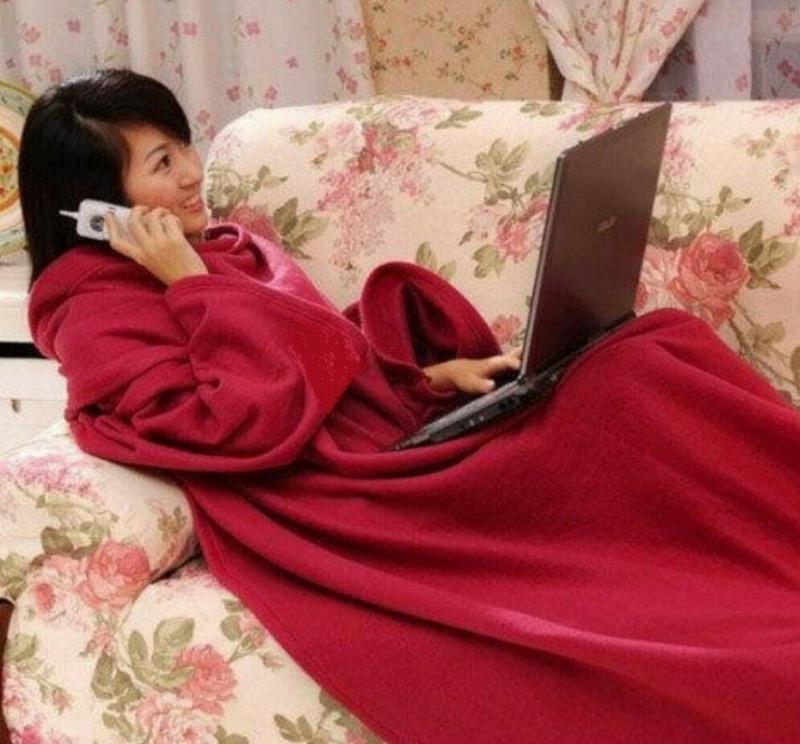 Плед с рукавами Прохладной зимой или промозглой осенью так приятно свернуться калачиком на диванчике или любимом кресле и пить ароматный горячий чай или просто читать интересную газету или книгу. Вот только по-настоящему согреться в наших квартирах можно лишь основательно закутавшись в теплый плед. Уникальная конструкция позволяет полностью укутываться от головы до пят. При этом у Вас сохраняется возможность делать что-то руками. Преимущества: изготовлен из мягкого и приятного материала; размер пледа позволяет полностью в него закутаться; не сковывает движения благодаря наличию рукавов. Уход: стирать до температуры 30°С и отдельно от одежды иного цвета; в процессе стирки не надо использовать смягчители для вещей; можно использовать отбеливатель, не содержащий хлора. Характеристики: материал: флис. длина рукава: 50 см. Размер: универсальный, 170см х 130см Цвет: красный