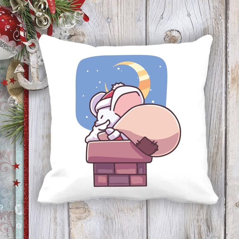 ## Подушка с новогодним принтом Мышонок с мешком у дымохода