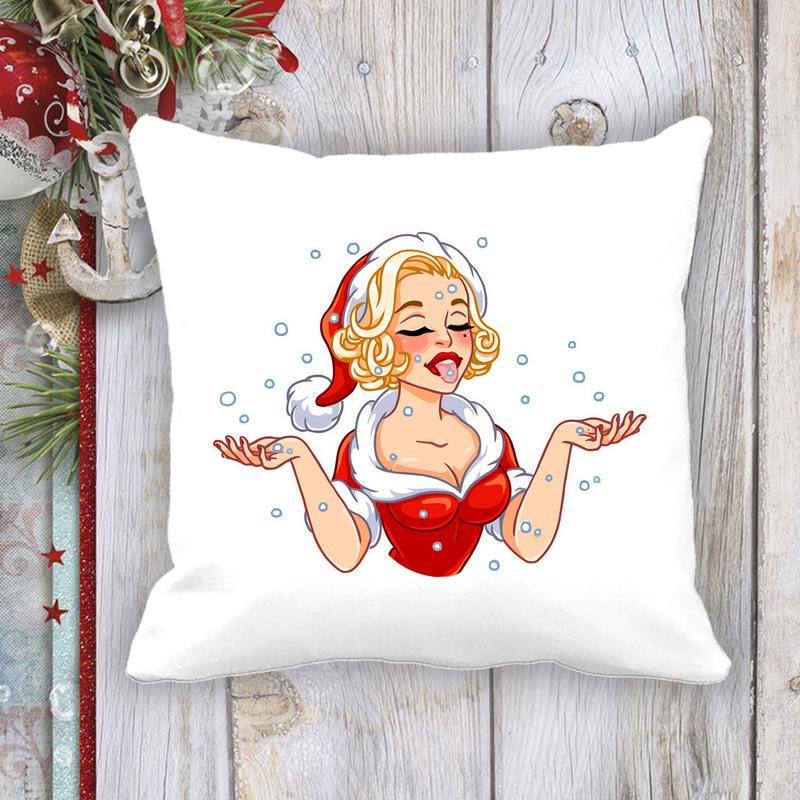 Подушка с новогодним принтом Мэрилин Монро в снегу