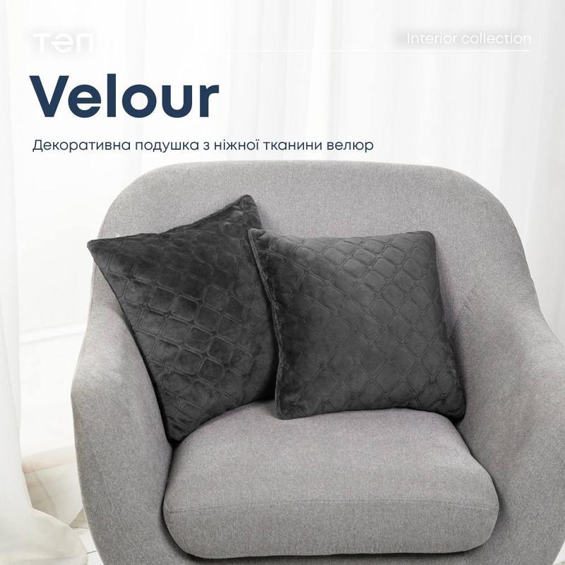 Код товару: Подушка велюрова декоративна Подушки VELURE від ТЕП доповнять інтер'єр спальні і подарують відчуття затишку. Надзвичайно м’яка на дотик велюрова тканина виглядає розкішно в будь-якому інтер’єрі. Завдяки якісним матеріалам, подушки VELURE зберігають естетичний вигляд впродовж довгого часу. Наповнювач в подушках VELURE – силіконізоване поліефірне волокно. Воно не поглинає пил та бруд, не викликає алергічних реакцій, швидко сохне після прання. Подушки VELURE – дбайливо розроблений дизайн, який доповнить затишну атмосферу спальні, дитячої кімнати чи вітальні. 🏷️Розмір : 40x40 см -479 грн ✔️В наявності усі 12 кольорів, як ✔️Продаж подушок лише парою -2 шт
