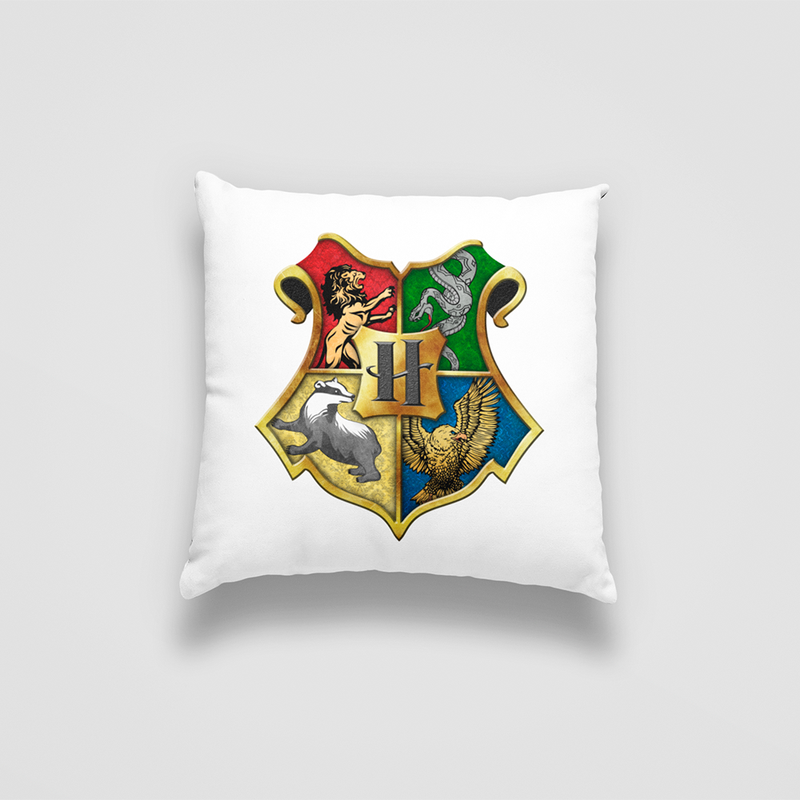 Подушка декоративная с детским оригинальным принтом "логотип факультетов harry potter. гар...