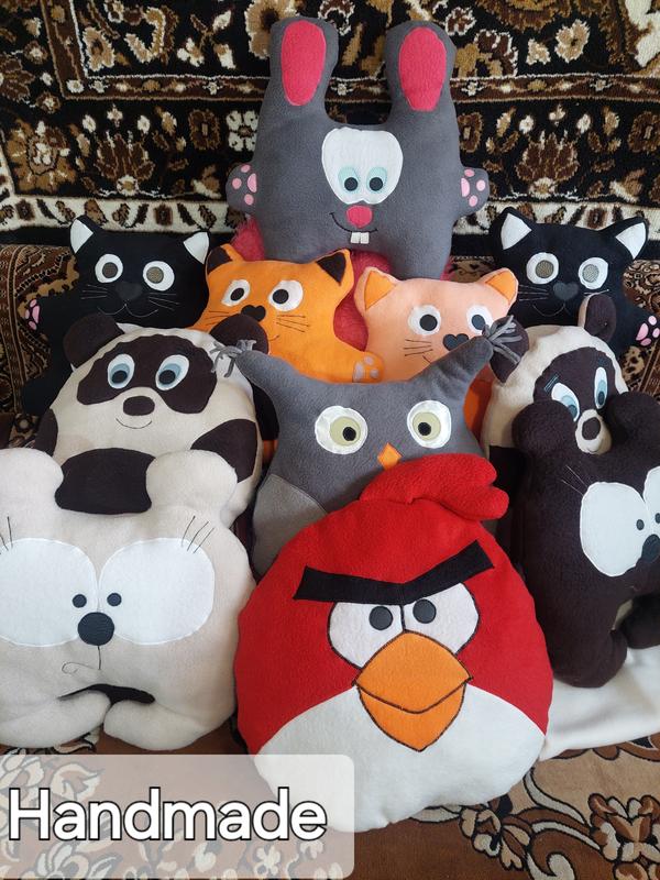 Подушка -игрушка -обнимашка. Милый, мягкий, веселый и всегда любимый подарок на любой праздник для взрослых и детей способный украсить Ваш интерьер и принести радость и хорошее настроение в дом. Подушечки ручной работы созданы с любовью для Вас и Ваших детей.И хорошее настроение всегда будет с Вами. Зверушки большие 33*35 и 35*38 изготовлены из флиса, натуральной кожи, ситца, наполнены гипоаллергенным холофайбером. Ассортимент будет увеличиваться. . Будем радовать. Рекомендованная цена Шкафа 400 гр.
