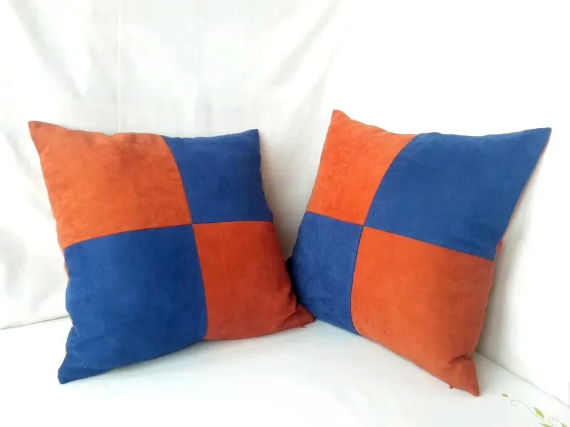 Форма: Квадратні Кілька примірників у наявності Декоративна акрилова подушка виконана з якісних тканин для домашнього декору. Подушка виконана з велюрових вставок синього і оранжевого кольору. Передня частина - квадрати, Задня частина - смужки. Чохол знімний на потаємний блискавки. Подушка з наповнювачем холофайбер (силіконізоване волокно) антиалергенний. Розмір 40 см х 40 см Ціна 600 гр за 2 шт. Подушечка м'яка і приємна на дотик... Стане відмінним подарунком. Створить затишок і настрій в інтер'єрі!