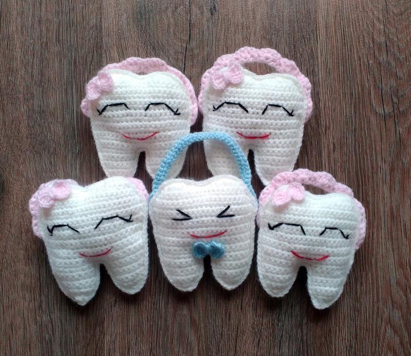 Вязаная подушечка зубик с кармашком для подарков от зубной феи Удобно повесить на ручку двери или на кроватку, есть кармашек для монет и зубиков Возможен любой цвет украшения. Вышивка имени (1 имя не более 6 букв) Товар под заказ