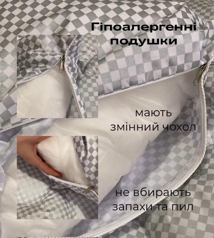 Надзвичайно легкі подушки, практично невагомі, пишні і дуже м'які.🪶🪶🪶🪶 Подушки зі штучного замінника лебединого пуху полюблять всі члени вашої родини.🦋 Характеристики: 📍Чохол - Тік. 📍Наповнювач - штучний замінник лебединого пуху. При виготовленні подушок жоден лебідь не постраждав)🦢🦢🦢 гіпоалергенність;❗️ не вбирає запахи; м'якість і легкість; пружність; довговічність; ✨️Напірник на замочку , в середині чохол з флезиліну в якому знаходиться штучний пух 🔴Розмір 50×70 - 675грн 70×70 - 800грн