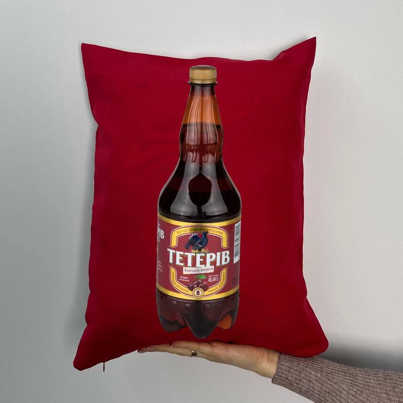 Подушка с принтом габардиновая тетеров хмельная вишня, красная 35х45 (329)
