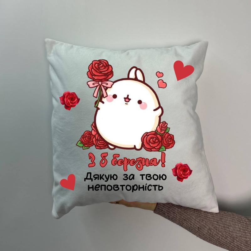 Подушка с принтом плюшевая с 8 марта! , белая 45х45 (778)
