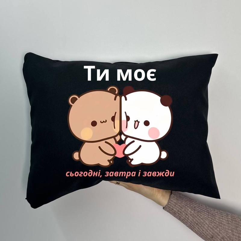 Подушка с принтом габардиновая ты моя сегодня завтра и всегда, черная 35х45 (1164)