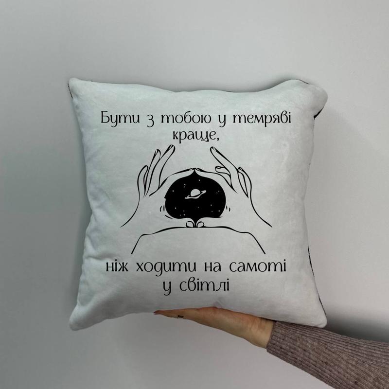 Подушка с принтом плюшевая быть с тобой в темноте, 35х35 (1441)