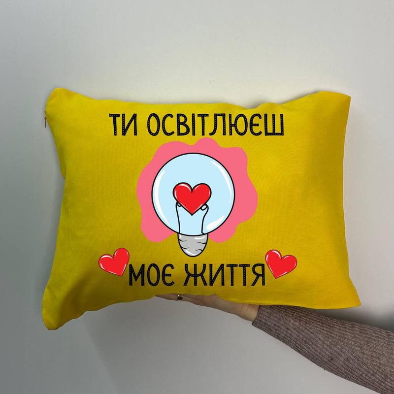 Подушка с принтом габардиновая ты осветишь мою жизнь, желтая 35х45 (1477)
