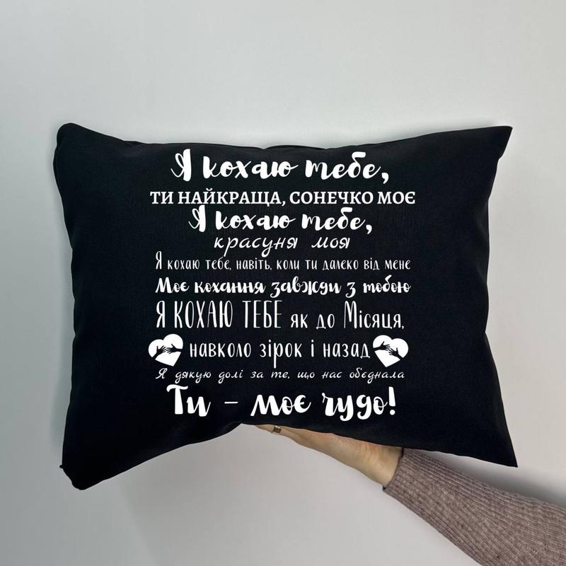 Подушка с принтом габардиновая ты - мое чудо!, черная 35х45 (1618)