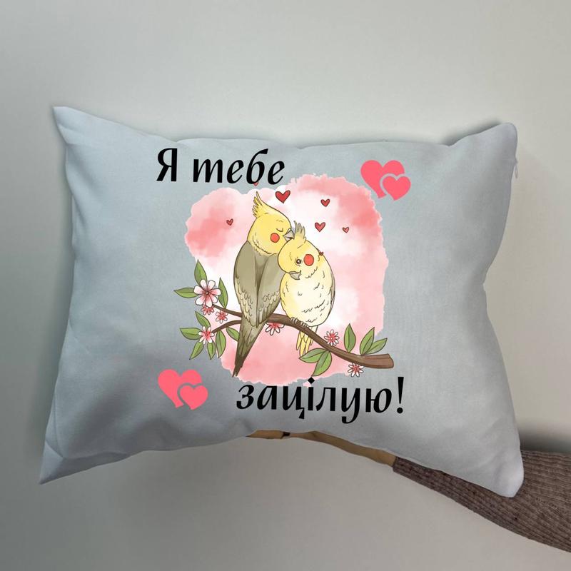 Подушка с принтом габардиновая я тебя зацелую, белая 35х45 (1774)