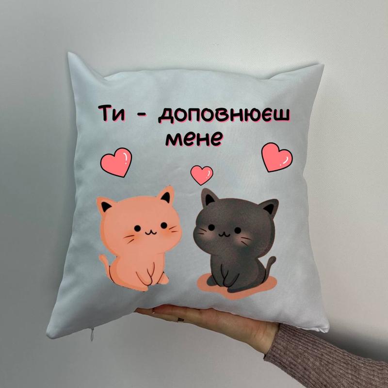 Подушка с принтом габардиновая ты- дополняешь меня, белая 35х35 (1865)