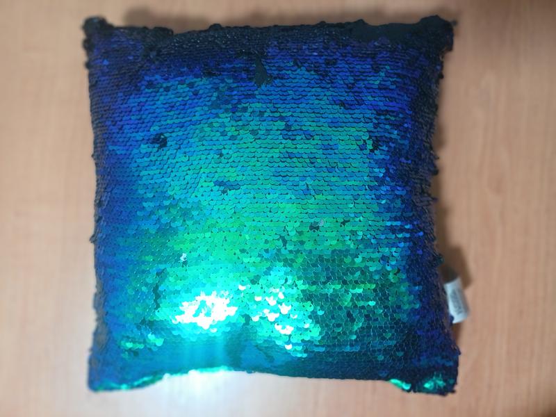Подушка небольшая красиво переливается, пайетки двусторонние,все как на фото,стан нового😍