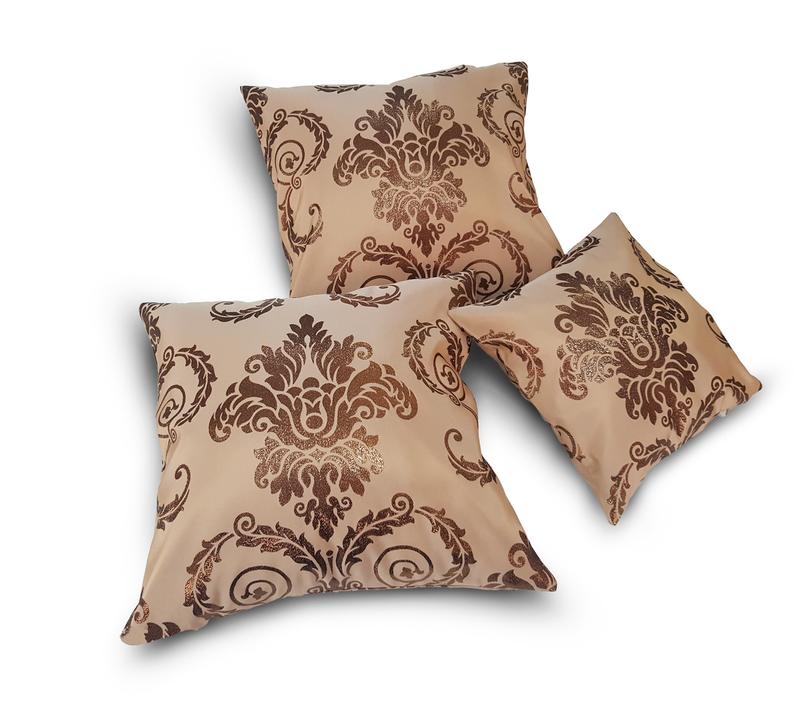 Комплект подушек дамаск бронзовый на бежевом фоне ,3шт