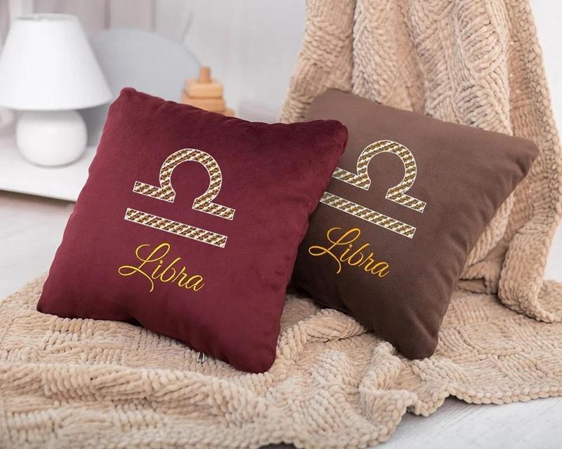 Подушка гороскоп весы подарочная декоративная в различных цветах бордовый