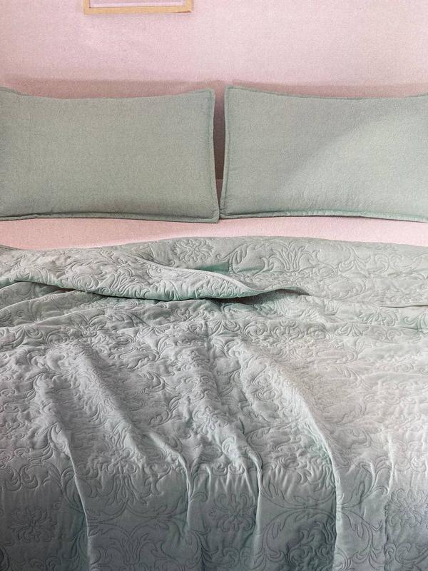 🌸Літнє Покривало з Наволочками🌸 Покривало стьобане. Бажаєте прикрасити свою спальню, зробити її яскравою та оригінальною? Тоді найкраща пропозиція це стьобане покривало. Універсальна тканина покривала з додаванням штучних волокон дуже практична в експлуатації, воно легко переться, і довгий час не втрачає свого вигляду. Розмір та комплектація: Покривало 200х220 см Наволочка 50х70 см. (2 шт.)