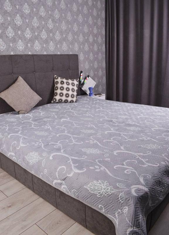 Плед/покрывало Состав : 60% котон, 40% полиестер Заявленный размер: 200 х 230 см Двухсторонний рисунок. в наличии 2 расцветки в сером цвете