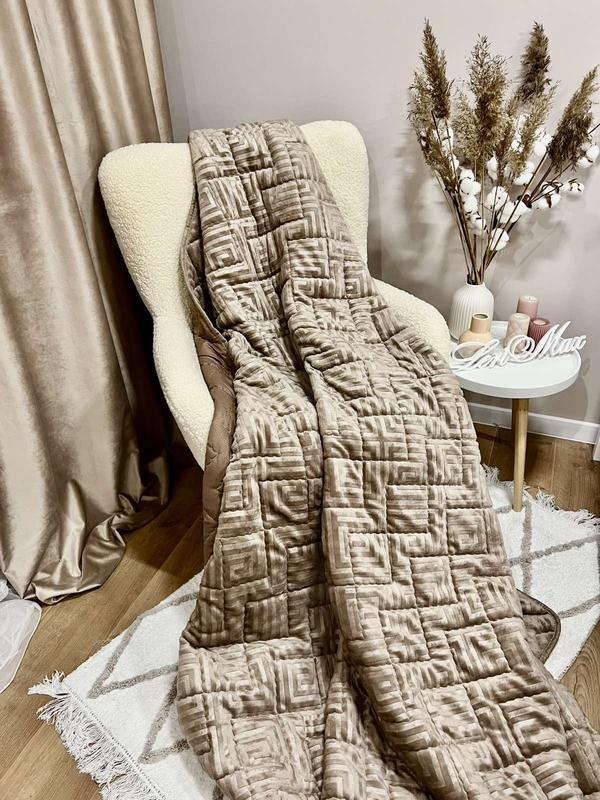 🤍🤎Двухстороннее покрывало: одна сторона - мягкий и роскошный велюр, другая - нежная и практичная микрофибра. Стильный вид, приятный на ощупь, износостойкий и легкий в уходе. Наповнювач Холофайбер 100мг/м2 Размер 200*220см