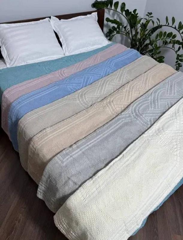 ▪️Код товару: Покривало вафелька Тканина: 100% бавовна Дуже ніжний і приємний на дотик пледик, ідеально підійде як на літню пору як плед-покривало на ліжко. 🏷️Розмір: 200x230 см