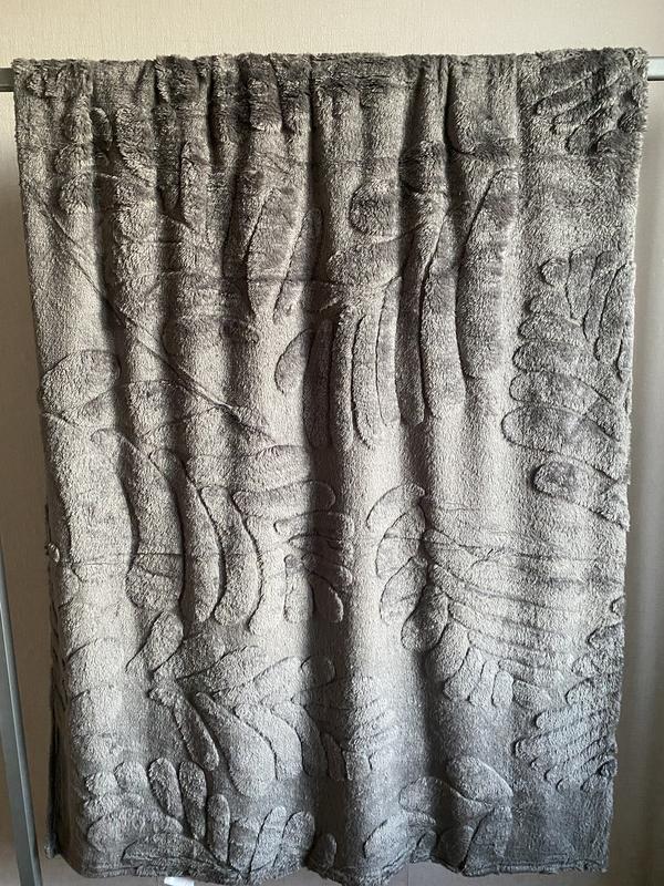 Плед Koloco з об'ємним візерунком «Листя» Цей стильний та затишний плед від бренду Koloco поєднує в собі неймовірну м'якість та сучасний дизайн. Головною особливістю моделі є тиснений 3D-малюнок у вигляді великого тропічного листя, що додає текстилю фактурності та візуальної глибини. Основні характеристики: * Склад: 100% поліестер (мікрофібра/штучне хутро). Матеріал дуже приємний на дотик, нагадує густе м'яке хутро, чудово зберігає тепло і не викликає подразнень. * Розмір: 220x240 см (Євро-розмір). Ідеально підходить як для великого ліжка, так і для використання як затишне покривало на диван. * Текстура: Плед має двосторонню фактуру — з одного боку об'ємний ворс із візерунком, з іншого — рівномірна м'яка основа. Догляд за виробом (згідно з маркуванням): Щоб плед залишався м'яким і не втрачав вигляд, варто дотримуватися цих правил: * Прання: При низькій температурі (до 30°C). * Сушіння: Тільки природним шляхом у підвішеному стані (не використовувати сушильну машину). * Прасування: Категорично заборонено (висока температура пошкодить синтетичні волокна). * Відбілювання: Заборонено. * Хімчистка: Дозволена звичайна чистка. Колірна гама (на фото): На зображеннях представлені три універсальні відтінки, які легко впишуться в будь-який інтер'єр: * Ніжно-рожевий (Пудра): додає романтичності та світла кімнаті. * Класичний сірий: практичний і стильний варіант для мінімалістичних інтер'єрів. * Оливковий / Фісташковий: спокійний природний колір для створення затишної атмосфери. Цей плед стане чудовим подарунком або ідеальним доповненням до вашого домашнього комфорту, особливо в холодну пору року.