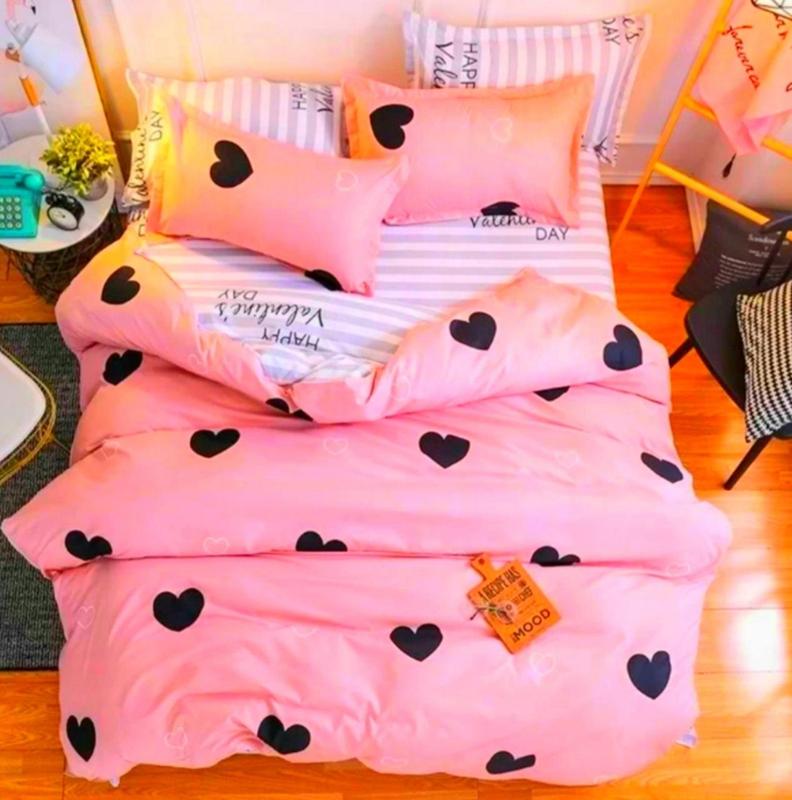 Полуторный комплект постельного белья " сердца, полоски, надписи ", бязь голд люкс "витал...