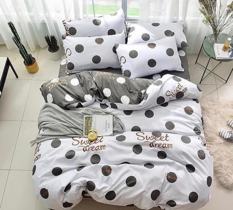 Полуторный комплект постельного белья " горох, круги серый, белый сладких снов ", бязь гол...