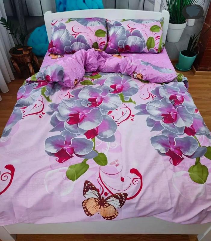 Полуторный комплект постельного белья 150*220 " орхидеи, цветы ", бязь голд люкс "виталин...