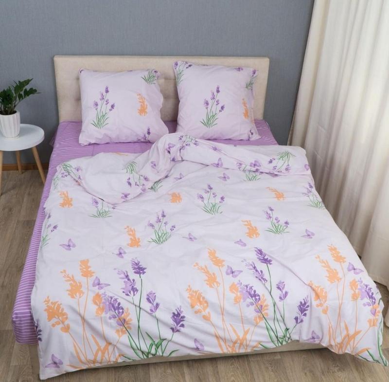 Полуторный комплект постельного белья " цветы, лаванда, полоска ", бязь голд люкс "витали...