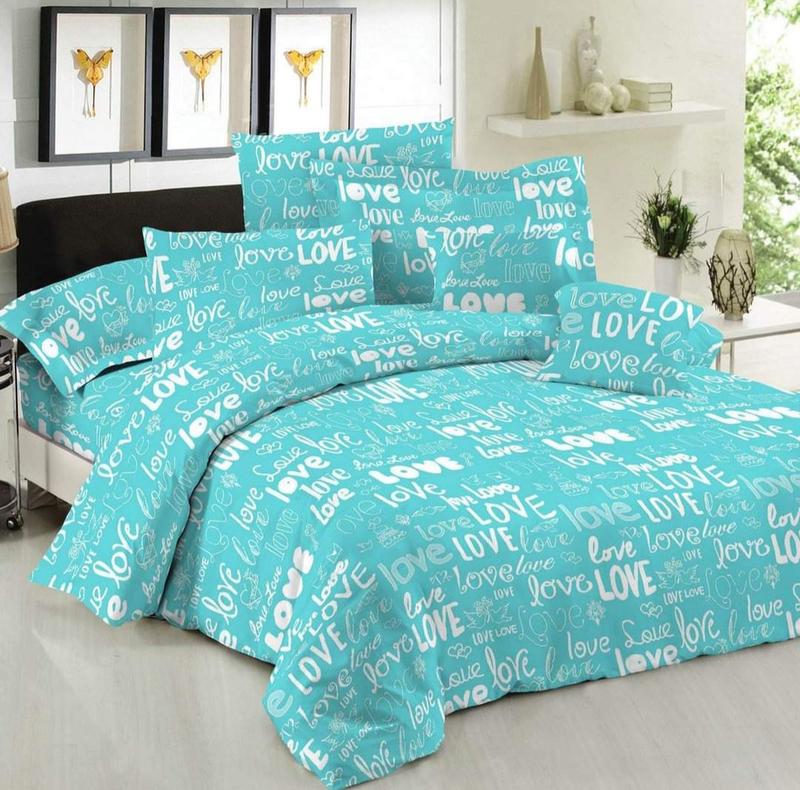 Евро комплект постельного белья лове надписи бирюзовый голубой бязь голд люкс, "виталина"