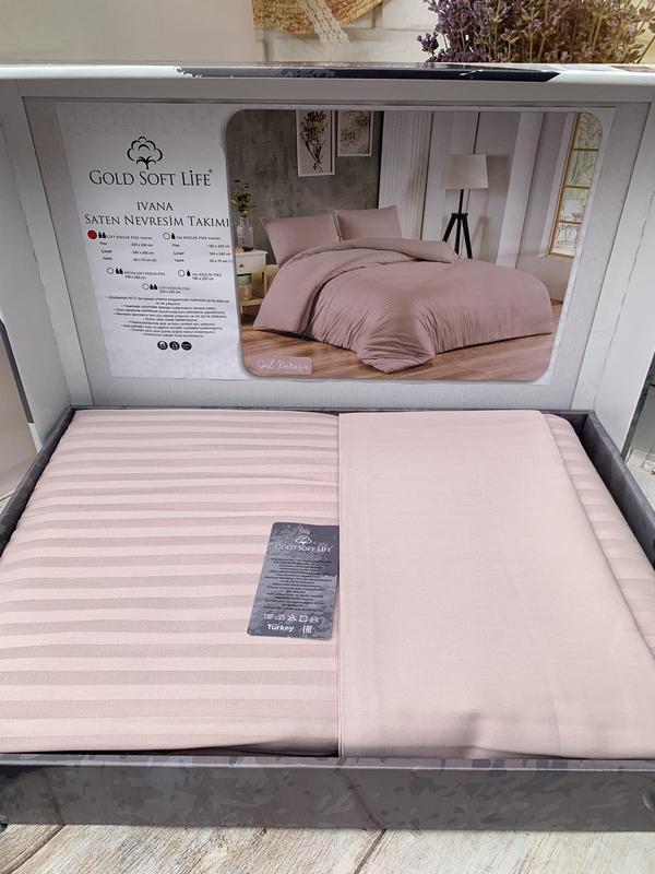 Постельный комплект страйп сатин от Турецкого производителя "Gold Soft Life" Размер: Евро Пододеяльник: 200*220 см Простынь: 240*260 см Наволочки: 50*70 см ( 2 шт.)
