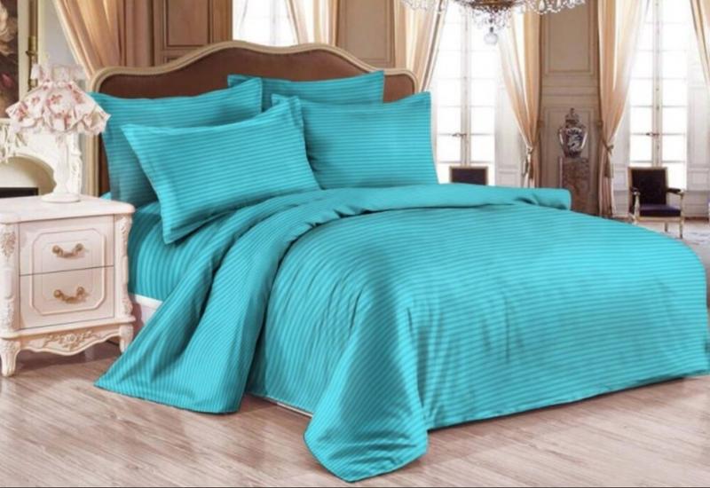 Комплект семейный однотонный с двумя пододеяльниками, комплект белья семейный Страйп Сатин 5-предметные Бирюзовый полосатое качественный Хотите купить качественный антиаллергенный комплект постельного белья? Переходите в каталог: Постельное белье из страйп-сатина - это элитное белье, предназначенное для тех, кто ценит роскошь в сочетании с практичностью! Страйп-сатин -- одна из самых красивых, прочных и приятных телу тканей, изготовленных из натурального волокна. Двойное переплетение тончайших хлопковых нитей высших сортов, наделяет эту ткань особыми свойствами, придает ей блеск и глянец. Сатин стал популярным в последние годы, так как он используется в комплектах постельного белья для элитных отелей и апартаментов, ресторанов и других особых помещений. Название ткани страйп-сатин происходит от английского слова "stripes", которое переводится как полосы. И это неспроста, так как страйп сатин представляет собой сатин с жаккардовым плетением. Именно жаккардовое плетение образует эффектный рисунок в виде полос, реже в виде прямоугольников или квадратов. Это постельное белье изготовлено из Страйп сатина плотностью 140 г/м2 с жаккардовым переплетением. Если вы ищете качественное, но доступное постельное белье - наш продукт именно то, что вам нужно! Этот материал хорошо подходит для любого декора, что делает его идеальным выбором для вашей спальни. Пододеяльник 145х215 ― 2 шт. Простынь 220х240 ― 1 шт. Наволочка 50х70 ― 2 шт. или наволочка 60х60 ― 2 шт. наволочка 70х70 ― 2 шт. (на выбор). ВНИМАНИЕ! По стандарту, наволочки пошиты без «ушек-рюш» за пошив с ушками доплата 90 грн. Если нужна подарочная коробка, то плюс 100 грн. Упаковка: полиэтиленовая упаковка Цвет изделия на фото может отличаться от реального из-за разной цветопередачи устройством экрана. Законом не предусмотрен возврат и обмен данного товара надлежащего качества: http:// https://zakon.rada.***********************************