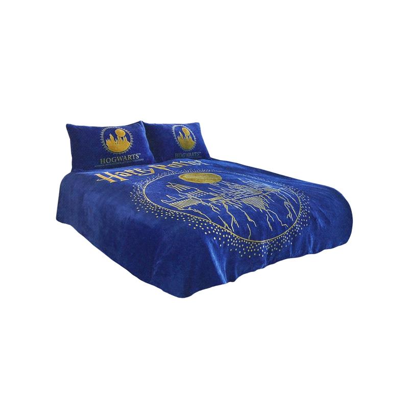 Сине-желтый флисовый комплект постельного белья с принтом Школы Волшебства Хогвартс. Комплект состоит из одной наволочки со сборкой и податчика, застегивающегося на кнопки. Изготовлен бережно и аккуратно, флисовый материал мягкий. Имеет сертификат OEKO-TEX STANDARD 100, который гарантирует отсутствие вредных веществ. Отличный подарок для поклонников волшебного мира Гарри Поттера. Комплект: 1 наволочка: 74 х 48 см 1 пододеяльник: 135 х 200 см