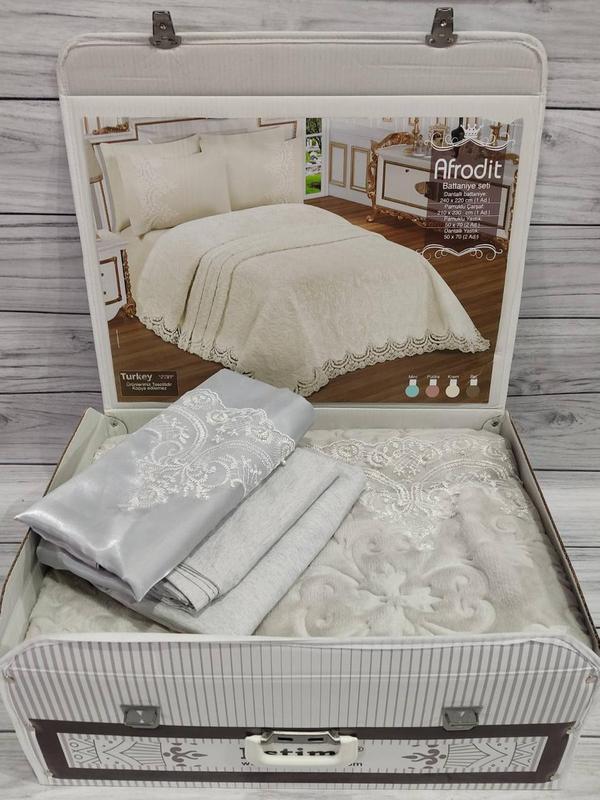 Плед и постельное белье estima c французским кружевом евро размер серый