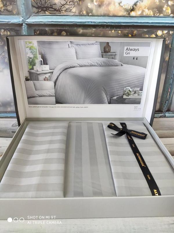 Постельное белье полуторное сатин страйп Altinbasak Always Gri Размер: полуторный Пододеяльник: 160х220 см. Простынь: 180х240 см. Наволочки: 2 шт., 50 х 70 см; Ткань: сатин страйп. Состав: 100% хлопок Производитель: Турция Постельное белье изготовлено из 100% натурального хлопка. Комплект упакован в красивую подарочную коробку. Ткань сатин-страйп с атласными полосками. Мягкое и гладкое на ощупь, выглядит дорого и красиво. Шикарное постельное белье из сатин-страйпа, станет украшением вашей спальни. ##