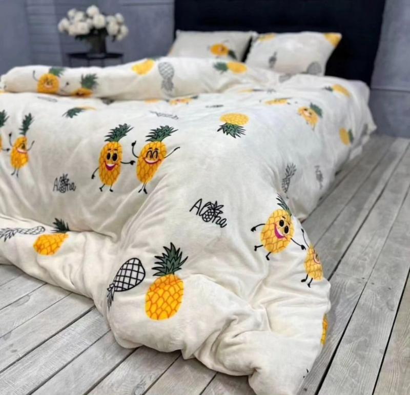 Плюшевое велюровое постельное белье ананасы