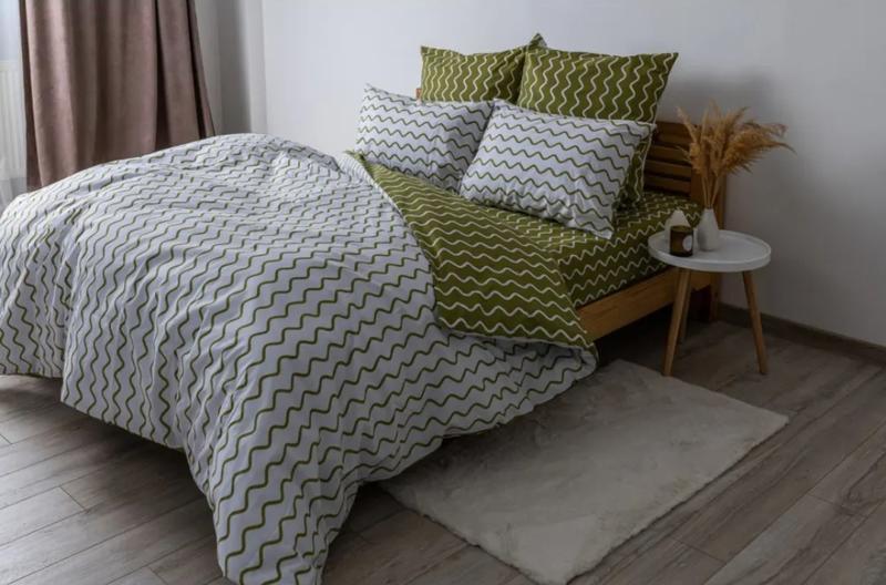 Белая с салатовым натуральная хлопковая ранфорс постель полуторная/двухспальная/евро/семей...