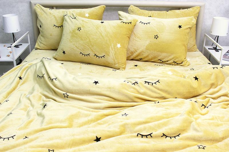Теплое постельное бельё из микрофибры ярко желтое. размеры: 1,5/2х сп/евро