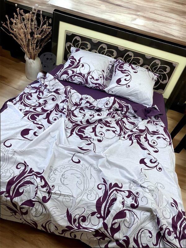 Постельное белье из бязи,в белом цвете, с узором, с фиолетовым узором, фиолетовый, бязь го...
